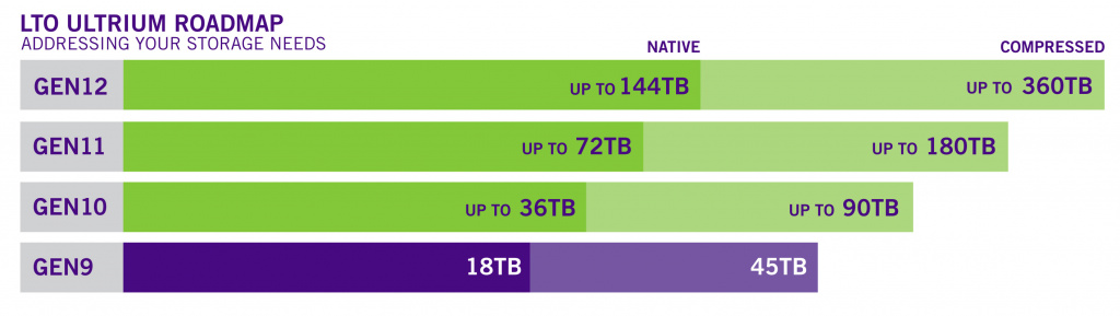 И ведь это далеко не все: останавливаться на достигнутом консорциум LTO не намерен. Уже сейчас известны емкостные показатели для стандартов LTO-10, 11 и 12, которых конгломерат намерен достигнуть в будущем.